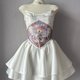 手绘上衣,全手工制作,从缝制开始,让艺术品取代画框穿在身上,此为分开式的胸衣与裙子。