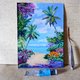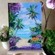 热带绘画,原创艺术,纸板上的棕榈树油画艺术,