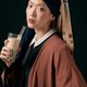 戴珍珠奶茶方巾的少女 Girl with a pearl milk tea scarf 以经典名画 Girl with a Pearl Earring 为概念发想,一起穿戴珍奶方巾散发青春的少女气息,随意搭出各式日常穿搭!