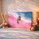 有些作品一眼就让人心情变好。这幅粉色海滩空拍风景,将柔和粉色沙滩与湛蓝海水融合,一艘小船静静停泊,营造出安静又梦幻的氛围。