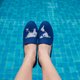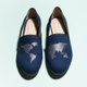 THE WORLD AT YOUR FEET's canvas loafers are made with navy-coloured canvas and contrast stitching (silver). Each pair comes with two layers of foam in the mid-sole for additional comfort.
