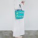 钱包的绿色背景上有苹果和桃子的插图。主体和抽绳包的颜色组合是我最喜欢的。