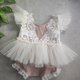 新生儿女孩第一次拍摄的蕾丝连身衣