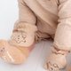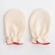 楽しくスキップしているうさぎやくまの刺しゅう入り。つめで顔をキズつけないように保護したり、寒さ対策にも役立ちます。