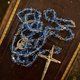 ✨【法国天主教 1950年代 蓝色玻璃珠 镀银十字架 玫瑰经念珠】✨