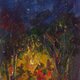 ACEO原创艺术油画《森林大火》。可收藏的微型绘画,2.5X3.5 英寸。