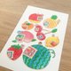 乍一看,这只是一张水果的图片,但水果里隐藏着动物,我们还融入了猴子打斗和对桃太郎的致敬,营造出一种像图画书中的页面一样的氛围。