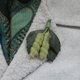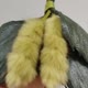 这款由真皮制成的小胸针,造型为桦树枝,并缀有貂毛制成的耳饰。