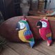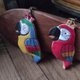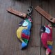 可爱皇冠金刚鹦鹉 蓝/红 颜色纯牛皮钥匙圈 - 可刻字