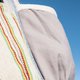 ▲以手织针织布+拼色棉麻布制作而成,手工棉的触感搭配鲜艳的配色,组成鲜明的色彩,是搭配衣着的好物,回归自然的美好经验