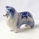 Sheltie dog porcelain statuette Gzhel blue - very natural purebreed exterrier dog figurine, size 10x12cm.