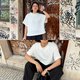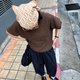 Textured blouse 微高领衬衫 柔软棉质泡泡纱材质 带有纹理且极具弹性 ONE SIZE 胸围 44" 衣长 22" 颜色 米白 棕色 黑色 搭配黑色灯笼裤