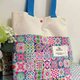 北欧花瓷砖粉红桃色图案帆布包包/手提包/全棉帆布/手工制/肩背包/侧背包