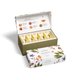新型态的开盖式包装设计清楚呈现每个手包金字塔茶包及茶品介绍,让您轻松选择每日的专享美味。内含十个金字塔型丝质茶包,每种口味皆有两个茶包:杏桃杏仁风味茶、蓝莓梅洛茶、樱桃风味柯梦茶、奇异果莱姆风味茶、香橙薄荷茶。