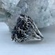 黑色原石树枝造型大银戒 指环 925 纯银 天然水晶戒指