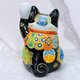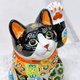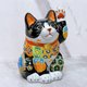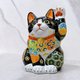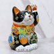 日本九谷烧招财猫 黑地盛小纹5.7号