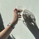 这种意大利牛皮材质触感柔软,色泽干净,并带有压皱图案的奢华哑光复古银色。
