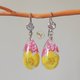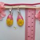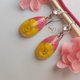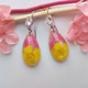 独一无二的 没有重制 环氧树脂真花 黄色和粉红色 无镍耳环钩