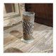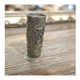 小巧精致的老件金属小器皿,整体呈圆柱形,器身布满了细腻的立体浮雕装饰,具有浓厚的古典或宗教艺术风格。