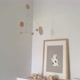Wooden mobile handcrafted from wooden , copper plate , stainless steel wire , crystal string .