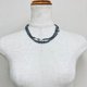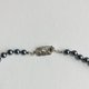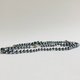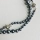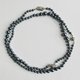 此为采用玻璃素材原珠,以原创色彩的珍珠涂料层层堆叠涂制而成的日本制造玻璃珍珠项链。与玻璃珠、水钻零件一同制成渐层设计,并将多个组合连接完成。珍珠之间皆细腻地加上结节,采用全结节加工。珍珠色泽为细致质感与适度光泽感的枪灰色。使用直径约5mm~9mm的珠子,长度约90cm,可轻松佩戴于衣物外。扣环采用经典设计的插入式。