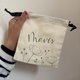 款式:索绳袋 材质:绵 尺寸:14x16cm 颜色:米白 款式1: 自选句子,也可以加上对方的名字 款式2: 选上图其一图案(小鸟/小兔/小狗/花卉),也可以加上对方的名字 句子以简短为主,例:Love never fails 英文名字格式,例:Peter *所有设计由设计师决定。 *全人手绘画和手写,不能确保每一件货品都一模一样,敬请留意。