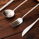 由304不锈钢,食品级不锈钢制成, 小腰手柄 - 手柄的设计理念是小腰,外观更时尚,握感更舒适 易清洁,不易生锈 简洁的设计可以用来搭配各种场景,用餐 产品包括:1个餐刀+ 1餐勺+ 1餐叉+ 1对筷子