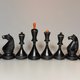 苏联原创稀有棋盘游戏,1930 年代,型号为“Botvinnik - Flohr II”或 BFII,因为这是苏联西洋棋冠军 Mikhaïl Botvinnik 最喜欢的西洋棋风格。也用于与 Flohr 的比赛。整体复古状况良好。请参阅照片。独特木制。白色棋子已用正宗龙血染料 + 虫胶重新处理,因为我收到时白色棋子完全没有上漆。国王高 11 厘米。