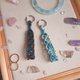 此款渐变色线编织钥匙圈混有红褐色、宝蓝色两种颜色