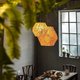 多边形的立体轮廓,在空中轻轻悬浮,如同时间的节点。光穿透树皮细致的纹理,将自然的肌理投射进室内空间,带来一种宁静、温暖又不张扬的陪伴。