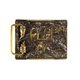 皮带扣以黄铜铸造。铸造后,每个皮带扣皆经过手工处理。处理后,皮带扣会覆盖一层仿古铜绿并再次抛光。
