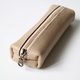 经典款皮制笔袋/收纳包 - 杏色荔枝纹 + 浅米拉链 - 铅笔盒/笔袋 - 真皮 卡其色