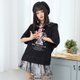 袖子与下摆有蕾丝拼接装饰,带有可拆的蝴蝶结领结