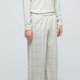 宽管裤型,修饰腿部线条,有长腿视觉效果,融合格纹印花元素,呈现出慵懒自在的随兴感,两侧附有口袋方便收纳,辅以舒适面料,任意搭配上衣即可展现惬意的造型风格。