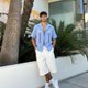 亮点在于棕榈树装饰:海贝形成叶片,鲁德拉克沙珠串成树干,象征和谐与稳定能量。每件衬衫均配有天然贝壳纽扣,增添自然美感。