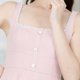 这款粉红棉质斜纹连身裙,厚实且不变形,是透过剪裁技术塑造的。胸部和上腰部由单独的布料制成并缝制在一起。下半身是百褶裙,穿着舒适,绝对能遮住小肚子。这款正面有链接装饰,很可爱。 (这是一个假按钮。穿着时配有后拉链),洋装颈部饰有水晶绣线。将穿在里面的长袖衬衫外面。或是单独戴,你的孩子也会超级可爱。这款。