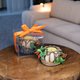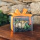烛台包装在带有橙色蝴蝶结的礼品透明盒中。如果您愿意,我会在礼物上题字,您将收到一份包装好的礼物。