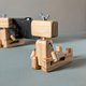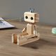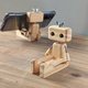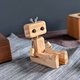 以实木打造的小小机器人,不只是可爱的装饰,更是实用的手机架。