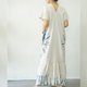 设计: 克伦风长洋装、V领、短袖、宽松剪裁、双侧口袋、裙摆拼接荷叶边