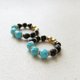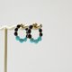 夜空に星がちりばめられたような美しいブルーゴールドストーンに、鮮やかなブルーが印象的なマグネサイトターコイズを組み合わせた、ミニサイズのフープイヤリングです。