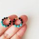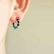 マグネサイトターコイズの鮮やかな青と、ブルーゴールドストーンの落ち着いた青の対比が美しいイヤリング。