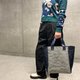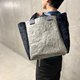 包款以压纹处理的橄榄灰特殊材质 tyvek 为基底,两侧拼接触感柔顺的意大利制羊羔绒,是一款极具个性的托特包。