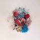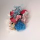 这款曾在台湾活动上火速售罄的作品,以其缤纷的素材与色彩搭配为特色,是一款独一无二的发饰。将毛线、棉线、布料等不同质地的线材结合,透过充满艺术感的手工精心制作而成。