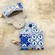 这款布以蓝、白、黄为主色,图案灵感来自地中海与葡萄牙瓷砖,带有几何花纹与手绘感,整体给人清爽、优雅又充满异国风情的氛围。