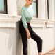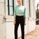 黑色弹性仿猄绒布料,舒适易穿,设计重点在脚跟开边配银色或金色钮扣(有链)。