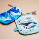 采用多种海洋元素制作多款花色的束口袋,水母星空增添了蓝色渐层流苏呼应水母触手的部分,粉色人鱼泡泡也多加一圈粉肤色绒球作为泡泡的点缀,内里也搭配表布色系做不同的花色的缝制。
