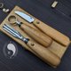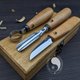 - 木勺雕刻套组。 此套组包含:一个木盒; 直刃刀 60 毫米; 凿刀 13 毫米; 圆凿(刮刀)直径 25 毫米。