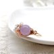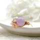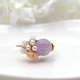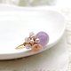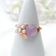 金属丝戒指,饰有薰衣草紫水晶、玫瑰石英、淡水珍珠和粉红贝壳花图案。