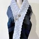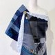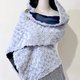作品一面由蓝与灰的丝质、毛料与麂皮构成;另一面是月白色的柔软玫瑰绒。视觉厚实,实际却轻暖舒适,为整体穿着添加最后一道层次。