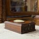 - 这件来自法国的罕见古董火柴盒,凝聚了浓厚的生活美学与精致工艺。盒身以沉稳的桃花心木为基底,盒盖中央镶嵌一枚微微隆起的椭圆形饰件,为淡奶油色的陶瓷釉面嵌片,外缘以手工齿状金属框环绕,细腻工艺一览无遗,晶莹如石的光泽映照出柔和温润的质感